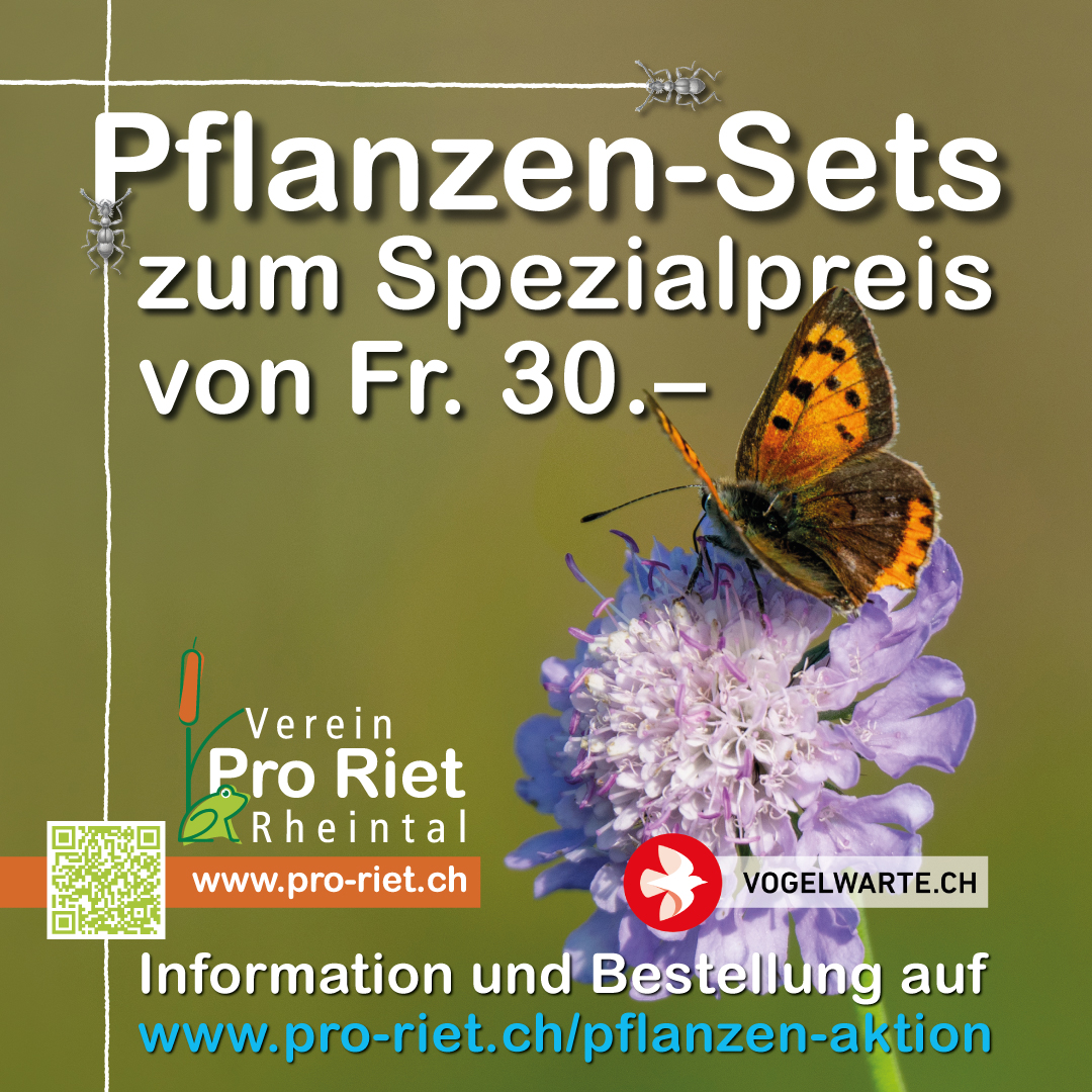 Die beliebte Pflanzen-Aktion von Pro Riet ist wieder gestartet. Interessierte Gartenbesitzer sowie Naturfreunde können ab sofort Wildblumen- und Sträucher-Sets zum Spezialpreis von 30 Franken auf www.pro-riet.ch/pflanzen-aktion bestellen. Die Abholung erfolgt am Freitag, 7. November,