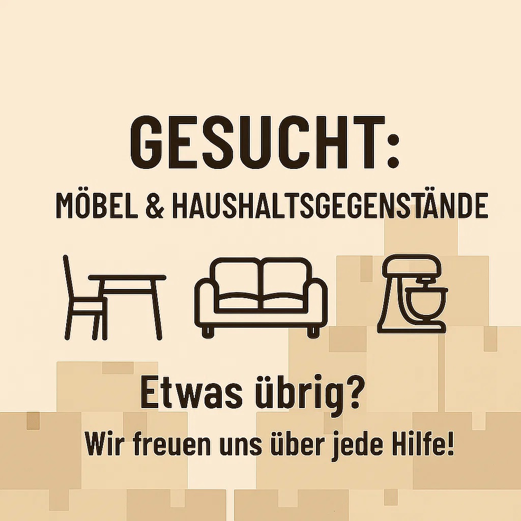 Die Sozialen Dienste Oberriet suchen für den Umzug einer Familie folgende Einrichtungsgegenstände: Esszimmer-Tisch und Stühle Schreibtisch oder Pult mit Stuhl für eine Oberstufenschülerin Sofa klein (2-er oder 3-er) 3 Einzelbetten mit Matratzen Trinkgläser Teller Pfannen Besteck Bitte senden Sie eine E-Mail mit